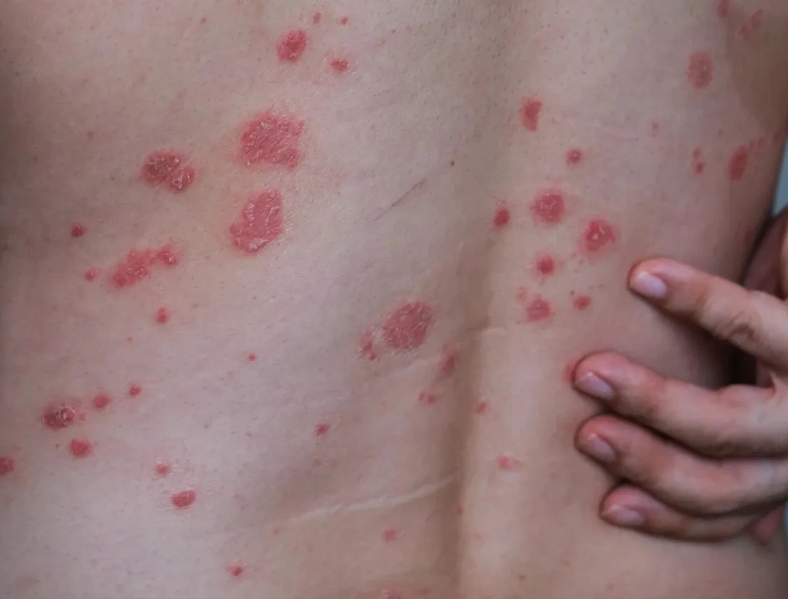 - thick, red patches